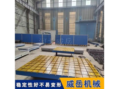 以“結構通用性+快速定位”為核心,平面度誤差≤0.04mm/m(1級),表面T型槽按標準化設計(槽距200-300mm),支持模塊化拼接(單塊1000×1500mm至3000×6000mm);材質多為HT250灰鑄鐵,成本低、加工性好,適配批量工裝需求。