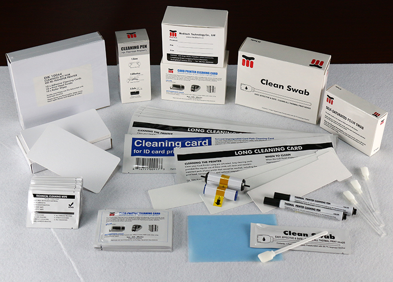 深圳美迪帝自主生產的多種清潔卡、IPA酒精清潔擦拭布、IPA酒精清潔筆、IPA酒精清潔棉簽、清潔輪、粘塵卡、研磨棒等多種耗材可用于Datacard、Evolis、Magicard、Zebra、Fargo多種知名品牌打印機以及證卡、熱敏、標簽、條碼等多種類型打印機的日常清潔維護保養,延長打印機使用壽命,提高打印質量。