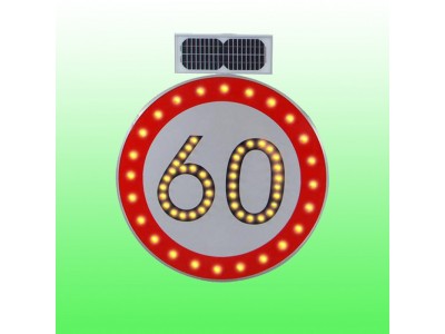 太陽能限速標志牌是以多晶硅太陽能板、蓄電池組件為能源,它利用太陽能板將白天的陽光轉換成電能貯存于蓄電池中,當夜幕降臨、視線昏暗或雨霧天氣等視線不佳情況下,限速標志牌上的發光二極管自動啟動閃爍,通過LED發出亮光來勾畫圖案輪廓,傳達交通信息。