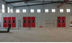 整個噴漆房為拼裝式結構,房體采用插式保溫夾心彩鋼板,密封、保溫性能好,房體裝有工作門,方便工作人員進出;鋁合金包邊大門,門裝有觀察窗,可觀察房內動態,選用低噪音,高風量風機,確保噴漆效果的性,噴漆時外部空氣經過粗效、中效過濾后由風機送到氣壓分流層,再經過頂部過濾凈化后,進入噴房內。房內空氣采用全降式,以0.2-0.3m/s的速度向下流動,使噴漆后的噴霧克粒不能在空氣中停留,而直接通過底部出風口被排出房外,加上噴房內具有一定的空氣壓力,外部灰塵無法進入噴房內,這樣不斷地循環轉換,且送入的空氣具有一定的壓力,可在工件四周形成一恒定的氣流以去除過量的油漆,從而較大限度的保證噴漆的質量。
