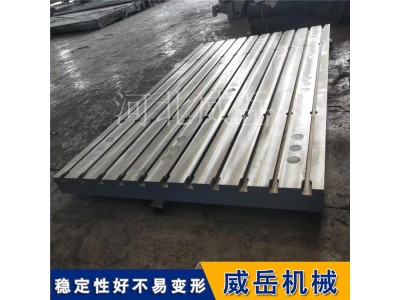 重型機械(如風電齒輪箱、機床床身)的組裝過程中,T型槽平臺通過槽內螺栓實現多工件的協同定。某船舶發動機制造案例顯示,利用平臺上的交叉T型槽網絡,工人可靈活調整部件位置,將裝配誤差控制在±0.05mm以內。鑄鐵的高阻尼特性還能吸收裝配沖擊振動,避免部件損傷。