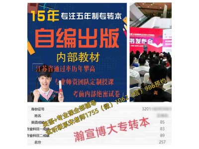 江蘇瀚宣博大專轉本學校為學生提供系統化教學服務,17年教學經驗,通過率高,英語和主考院校專業課全部開課,涵蓋基礎精講、專題強化及沖刺模考等階段。師資力量雄厚,授課教師均具備多年專轉本考試輔導經驗,能夠結合考試動態精準講解高頻考點。同時,配備專屬班主任了解備考進度,定期組織模擬考試,幫助學生查漏補缺,穩步提升應試能力,具體課程詳情及預約試聽課聯系宋老師1755(微)1062(信)986了解。
